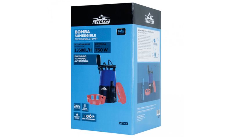 La Bomba Sumergible Multifunción 750W MC750E EVEREST MI-EVE-056759 es una herramienta versátil diseñada para extraer y trasladar agua de manera eficiente en diferentes aplicaciones. Ideal para drenaje, vaciado de estanques, pozos, cisternas o inundaciones domésticas, esta bomba proporciona un rendimiento confiable y seguro.
