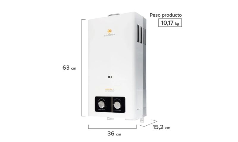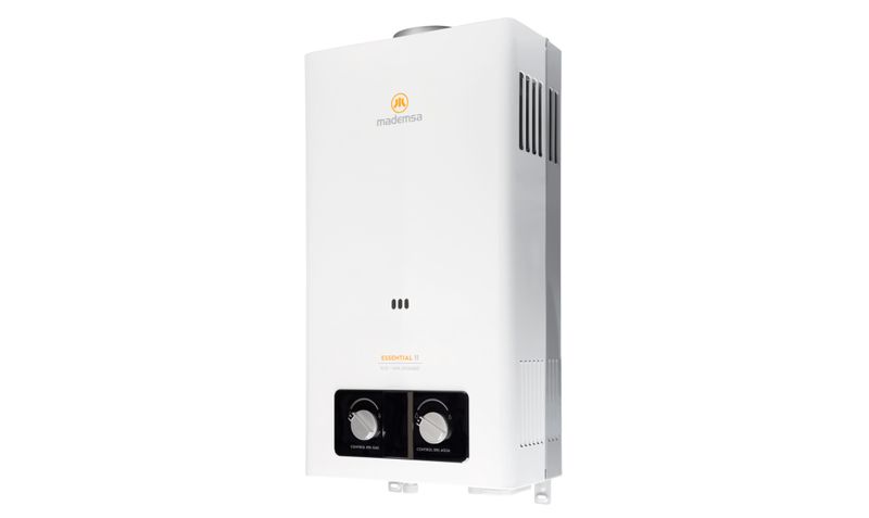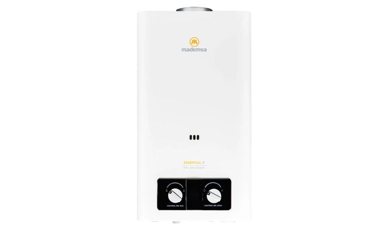 El calefón Mademsa Essential 11 ECO GL de 11 litros por minuto está diseñado para entregar un flujo constante de agua caliente para duchas, lavamanos y lavaplatos en viviendas de tamaño medio o familias que requieren mayor caudal. Funciona con gas licuado y tiro natural, especial para instalación en exterior o zonas muy bien ventiladas, e incorpora encendido electrónico automático con solo abrir la llave de agua caliente, eliminando la llama piloto permanente y optimizando el consumo de gas. Su intercambiador de calor de cobre libre de oxígeno y la tecnología de quemadores permiten un calentamiento más eficiente, logrando eficiencia energética clase B y un rendimiento adecuado para uso diario. Integra múltiples sistemas de seguridad y panel digital con visor de temperatura en un formato mural compacto, que facilita su instalación en muros exteriores y el control de la temperatura desde el frente del equipo.