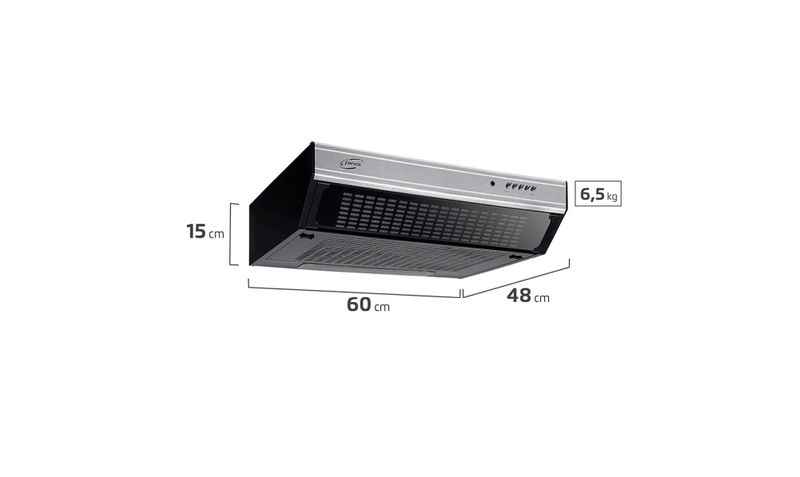 Uso recomendado: Extracción o recirculación de vapores y olores en cocinas domésticas con encimeras de 60 cm, manteniendo el ambiente más limpio y confortable.