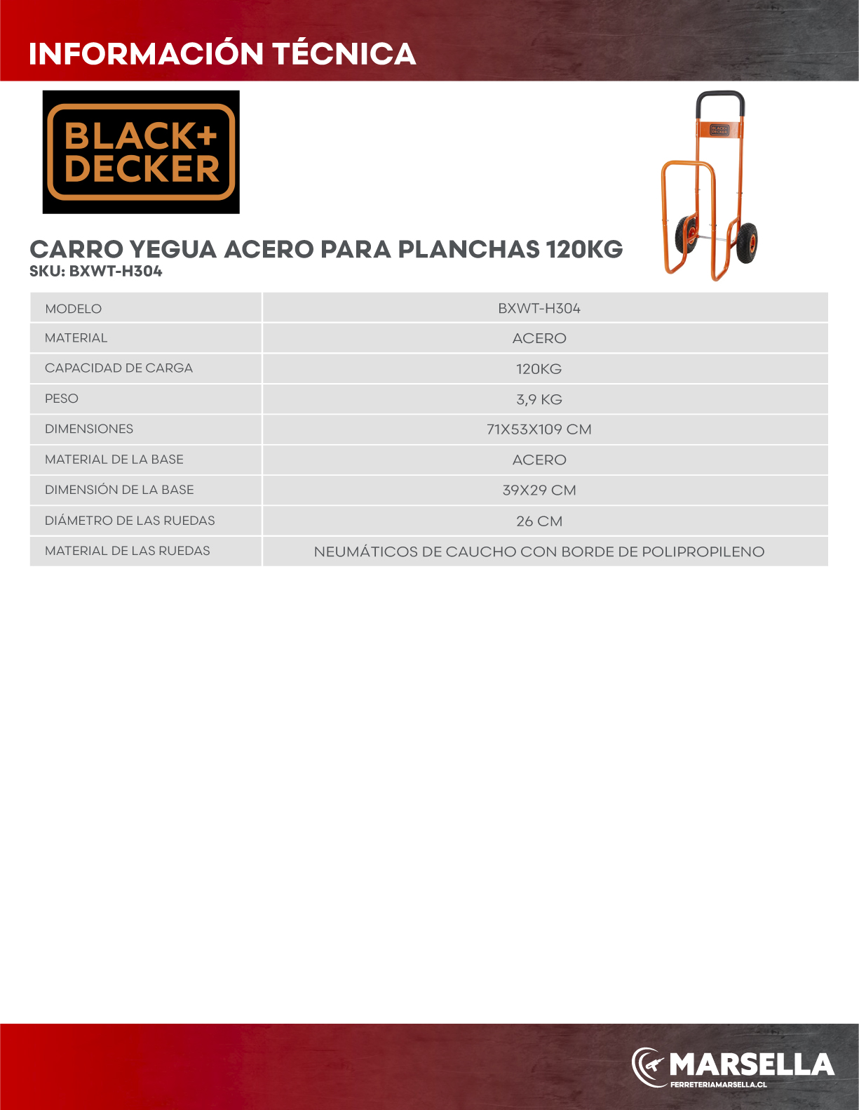 El Carro Yegua de Acero para Planchas modelo BXWT-H304 es una herramienta especializada diseñada para transportar planchas, paneles y materiales planos con una capacidad máxima de 120 kg. Fabricado en acero reforzado con acabado en pintura electrostática, garantiza resistencia, durabilidad y protección contra la corrosión, ideal para uso en talleres, almacenes y obras de construcción.