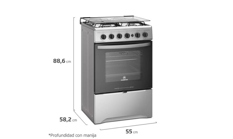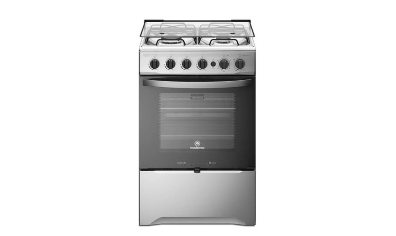 La cocina a gas Mademsa M 775 ST de 4 platos es una cocina de piso en acabado silver/acero inoxidable, diseñada para funcionar con gas licuado o gas natural y ofrecer una solución completa para la preparación diaria de alimentos en el hogar. Dispone de 4 quemadores (2 rápidos y 2 semi rápidos) con encendido electrónico en cubierta, que permiten cocinar varios platos a la vez con mayor comodidad. Su horno a gas de 65 litros, con recubrimiento Fast Clean/auto limpiable, timer y luz interior, facilita la cocción de preparaciones de mayor tamaño y simplifica la limpieza. La cubierta de acero inoxidable con cubierta/tapa de vidrio templado y parrillas esmaltadas antiderrame contribuye a una cocina más ordenada y segura, mientras que su eficiencia energética clase A ayuda a optimizar el consumo.