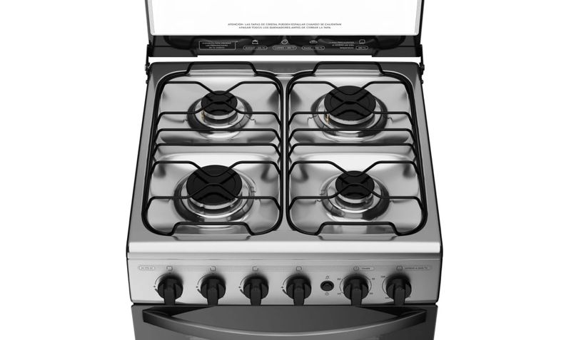 Uso recomendado: Cocinas domésticas que requieren una cocina a gas de 4 quemadores con horno amplio, buena eficiencia energética y superficie fácil de limpiar.