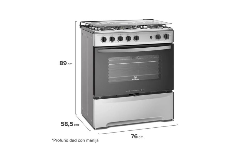 La cocina a gas Mademsa M 920 T de 5 quemadores es una cocina de piso en acero inoxidable, diseñada para funcionar con gas licuado o gas natural y ofrecer mayor espacio y potencia para familias que cocinan a diario. Incorpora cinco quemadores, incluyendo un quemador triple llama de alta potencia, que permite hervir, saltear o cocinar en ollas grandes con rapidez, mientras los otros quemadores se destinan a preparaciones de menor intensidad. Su horno a gas de 85,56 litros con grill eléctrico, recubrimiento Fast Clean/Limpia Fácil, quemadores abatibles, luz interior y puerta de amplia visibilidad facilita la cocción de grandes preparaciones y simplifica la limpieza. La cubierta de acero inoxidable con parrillas de pletina, tapa de vidrio templado, encendido eléctrico y eficiencia energética clase A completan un equipo robusto, eficiente y orientado a un uso intensivo en el hogar.