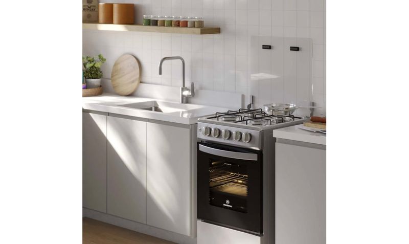 Uso recomendado: Cocinas domésticas que buscan una cocina a gas de 4 quemadores compacta, con horno LimpiaFácil, tapa de vidrio y alto nivel de seguridad por sensor de bloqueo de gas.