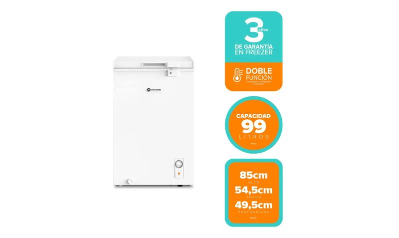 Tipo: Freezer horizontal dual (funciona como congelador o refrigerador).
