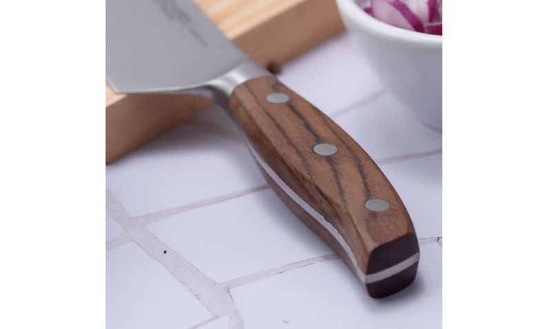 Construcción: Cuchillo forjado, hoja robusta con buen peso para corte eficiente.