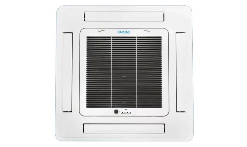 Aire acondicionado split cassette CLARK modelo SPL-CCA12K con capacidad de 12.000 BTU/h. Este equipo est diseado para ofrecer una climatizacin eficiente y uniforme en espacios pequeos y medianos como oficinas, locales comerciales, salas de reuniones o habitaciones residenciales de aproximadamente 15 a 20 m. Su diseo tipo cassette permite una instalacin empotrada en el techo, lo que ahorra espacio y distribuye el aire en mltiples direcciones para un confort equilibrado en todo el ambiente. Requiere alimentacin elctrica de 220 V.