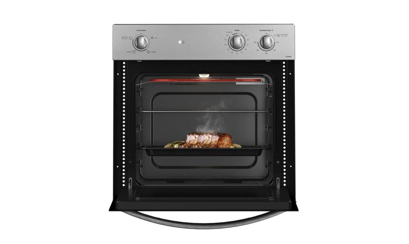 Horno empotrable eléctrico Fensa de 66 litros con frente espejado, pensado para integrarse en el mueble de cocina y aportar un look moderno. Su capacidad permite preparar bandejas grandes de carnes, pasteles y otras recetas familiares sin problemas de espacio. La cavidad esmaltada facilita la limpieza interna y ayuda a mantener el horno en buen estado con menos esfuerzo. Incorpora grill eléctrico para dorar y gratinar, logrando mejores terminaciones en las preparaciones. El timer mecánico con autoapagado y la puerta de doble vidrio templado entregan mayor control, eficiencia y seguridad en el uso diario.