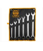 El juego de llaves punta y corona con chicharra INGCO HKSPAR1061 es un set industrial de 6 llaves combinadas de carraca, en medidas grandes de 19 a 32 mm, pensado para trabajos de apriete y mantención en maquinaria, equipos agrícolas y aplicaciones industriales exigentes. Cada llave combina boca fija (punta) por un extremo y corona con mecanismo de chicharra por el otro, fabricada en acero Cr‑V pulido con acabado cromado mate, lo que entrega buena resistencia mecánica y rapidez en el apriete sin retirar la herramienta de la tuerca.