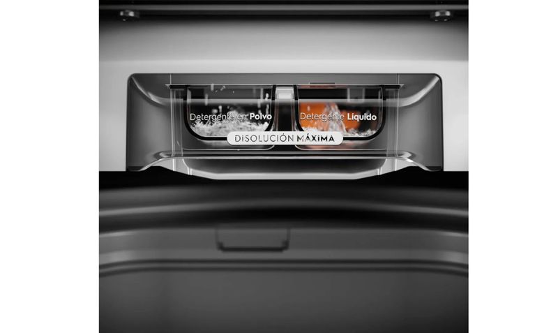 Dispensador: Dispensador de Disolución Máxima, diluye el detergente antes de ingresar al tambor para evitar residuos.