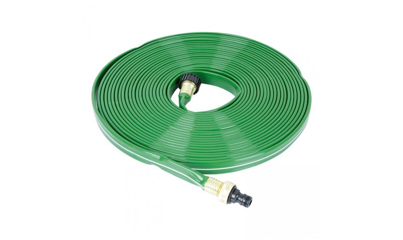 Fabricada en PVC flexible y resistente, la manguera garantiza durabilidad y facilidad de manejo. Sus accesorios de bronce aportan robustez y seguridad en las conexiones, mientras que su extensión de 15 metros es perfecta para cubrir espacios pequeños y medianos. Este sistema de riego facilita mantener plantas, césped y maceteros en óptimas condiciones con mínimo esfuerzo.