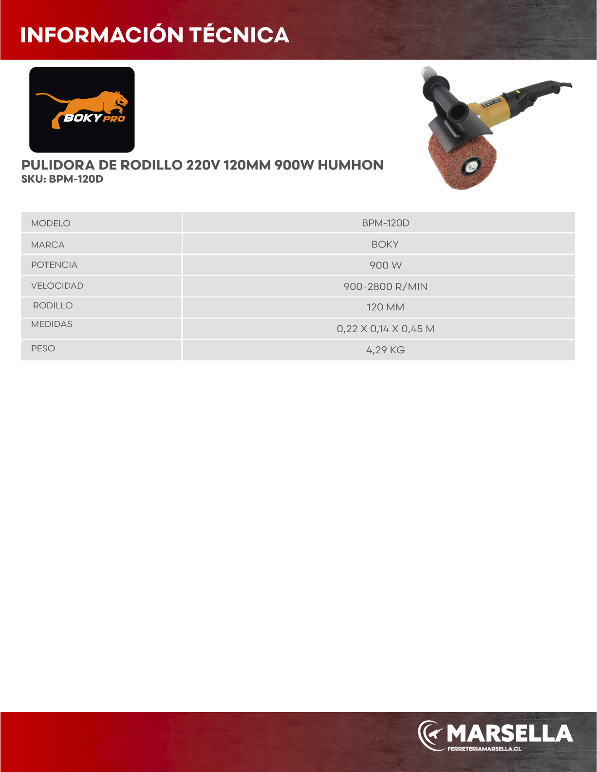 La Pulidora de Rodillo HUMHON 220V 120mm 900W es una herramienta potente y eficiente diseñada para brindar acabados profesionales en superficies metálicas, madera y otros materiales. Equipada con un rodillo abrasivo de 120 mm, esta pulidora ofrece un lijado y pulido uniforme, ideal para remover óxido, pulir y alisar diversas superficies.