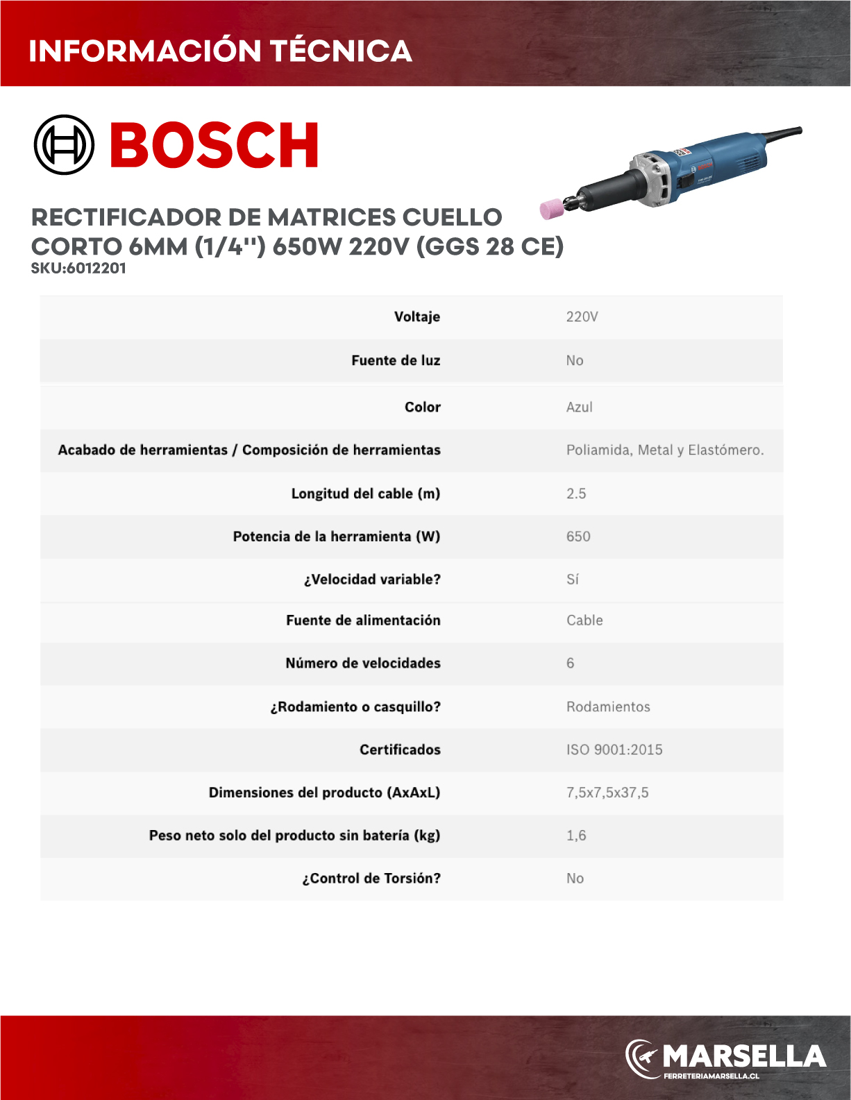 - Diámetro máximo de muela abrasiva: 50 mm