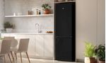El refrigerador Mademsa MI60B de 285 L es un bottom freezer No Frost con tecnología Inverter, diseñado para optimizar el consumo energético y mantener temperaturas estables para una mejor conservación de los alimentos. Su diseño compacto de 60,2 cm de ancho y 186 cm de alto en color negro se adapta fácilmente a cocinas modernas, ofreciendo buena capacidad en un espacio reducido. La configuración con congelador inferior mejora la ergonomía al dejar los alimentos de uso frecuente a la altura de la vista, mientras el sistema No Frost elimina la formación de escarcha y evita descongelaciones manuales. Incorpora iluminación LED, puerta reversible, alarma de puerta abierta y bandejas de vidrio templado, facilitando la organización y visibilidad del interior, es una alternativa eficiente para familias que buscan reducir su gasto eléctrico sin sacrificar capacidad.
