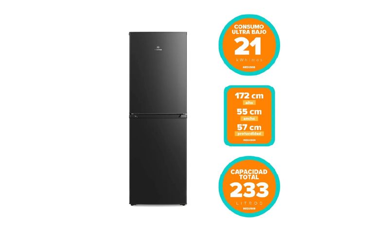 El refrigerador Mademsa MED250 de 248 L es un bottom freezer de frío directo con tipología 50/50, que equilibra el espacio entre refrigerador y congelador para un uso más flexible en el día a día. Gracias a la tecnología Frío Directo con Euro System, genera un microclima interno que ayuda a conservar mejor la frescura, sabor y textura de los alimentos. Su diseño de 172 cm de alto y solo 55 cm de ancho facilita la instalación en cocinas angostas, manteniendo buena capacidad interior tanto para frescos como congelados. Además, incorpora puerta reversible y 4 cajones en el congelador, lo que mejora la organización y el acceso a los productos congelados.
