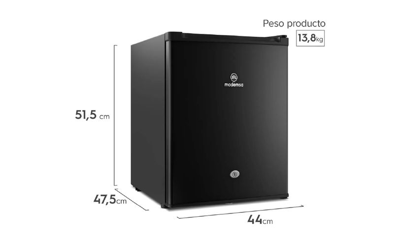 El refrigerador minibar Mademsa MMB 50 BLK de 47–50 L ofrece una solución compacta para conservar bebidas y snacks en espacios reducidos como oficinas, dormitorios o departamentos tipo estudio. Su sistema de frío directo con compartimiento tipo top freezer permite alcanzar temperaturas desde -2 °C hasta 10 °C, suficiente para enfriar latas, botellas y alimentos de consumo rápido. Incorpora cerradura con llave y control manual de temperatura, lo que ayuda a proteger el contenido y ajustar fácilmente el nivel de enfriamiento, mantiene un uso moderado de energía acorde a su tamaño.