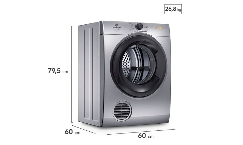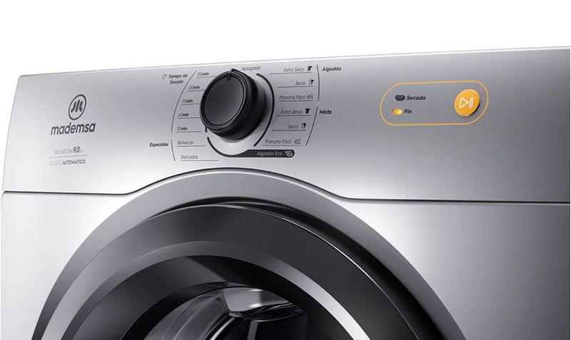 La secadora de ropa Mademsa 9D SZG silver (9 kg, código 240086482) es una secadora eléctrica de evacuación y carga frontal, diseñada para familias que requieren secar grandes volúmenes de prendas con rapidez y cuidado, incluso en climas fríos o húmedos. Incorpora tecnología de secado automático que mide temperatura y humedad para detener el ciclo en el punto justo, junto con secado reversible que reduce las arrugas hasta en un 32% y ayuda a mantener los colores más vivos por más tiempo. Ofrece 9 programas de secado adaptados a distintos tipos de tela, función Refrescar para eliminar olores en 30 minutos y un panel análogo de fácil uso en un diseño silver compacto que se integra en lavanderías domésticas.