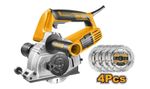 La sierra acanaladora INGCO WLC15008 está diseñada para abrir ranuras precisas en concreto, muro y mampostería para canalizaciones eléctricas, tuberías y otros usos profesionales. Motor de 1500W, admite 4 discos de corte de 125mm de diámetro cada uno. Permite ajuste de ancho y profundidad de canal, trabaja con rosca estándar M14, incorpora sistema de protección de polvo y fácil montaje de discos. Incluye cincel, mango auxiliar, juego de escobillas, 4 discos de corte y llave.