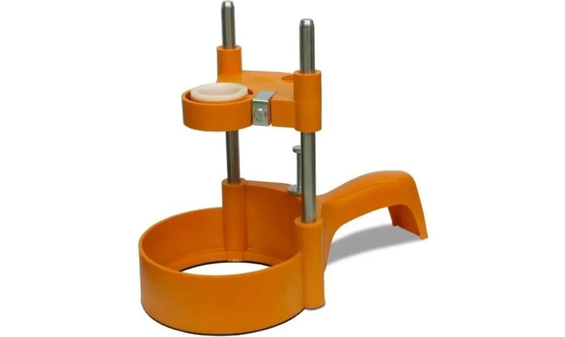 El soporte para taladro eléctrico RUBI ref. 50900 es una guía robusta para perforaciones con brocas de diamante en gres, gres porcelánico y granito, pensada para usar un taladro eléctrico común con máxima precisión. Permite regular la profundidad de perforación y mantener la broca estable tanto en posición horizontal como vertical, evitando que se desplace sobre la superficie al iniciar el taladro.