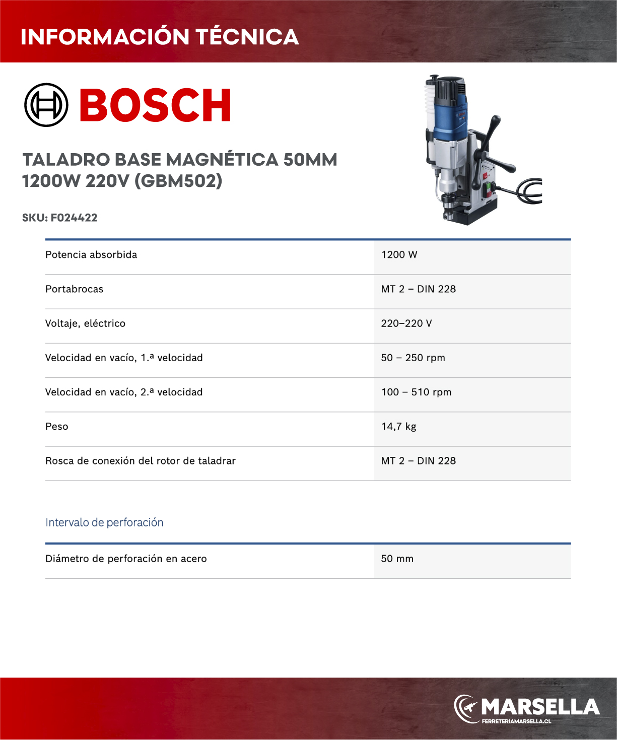 El Taladro Base Magnética Bosch GBM 50-2 es una herramienta profesional de alto rendimiento, diseñada para perforaciones precisas en metales ferrosos y no ferrosos. Con una potente potencia de 1200W y una capacidad de perforación de hasta 50 mm de diámetro, es ideal para trabajos industriales y de mantenimiento en estructuras metálicas. Su base magnética de alta fuerza garantiza estabilidad y seguridad durante la operación.