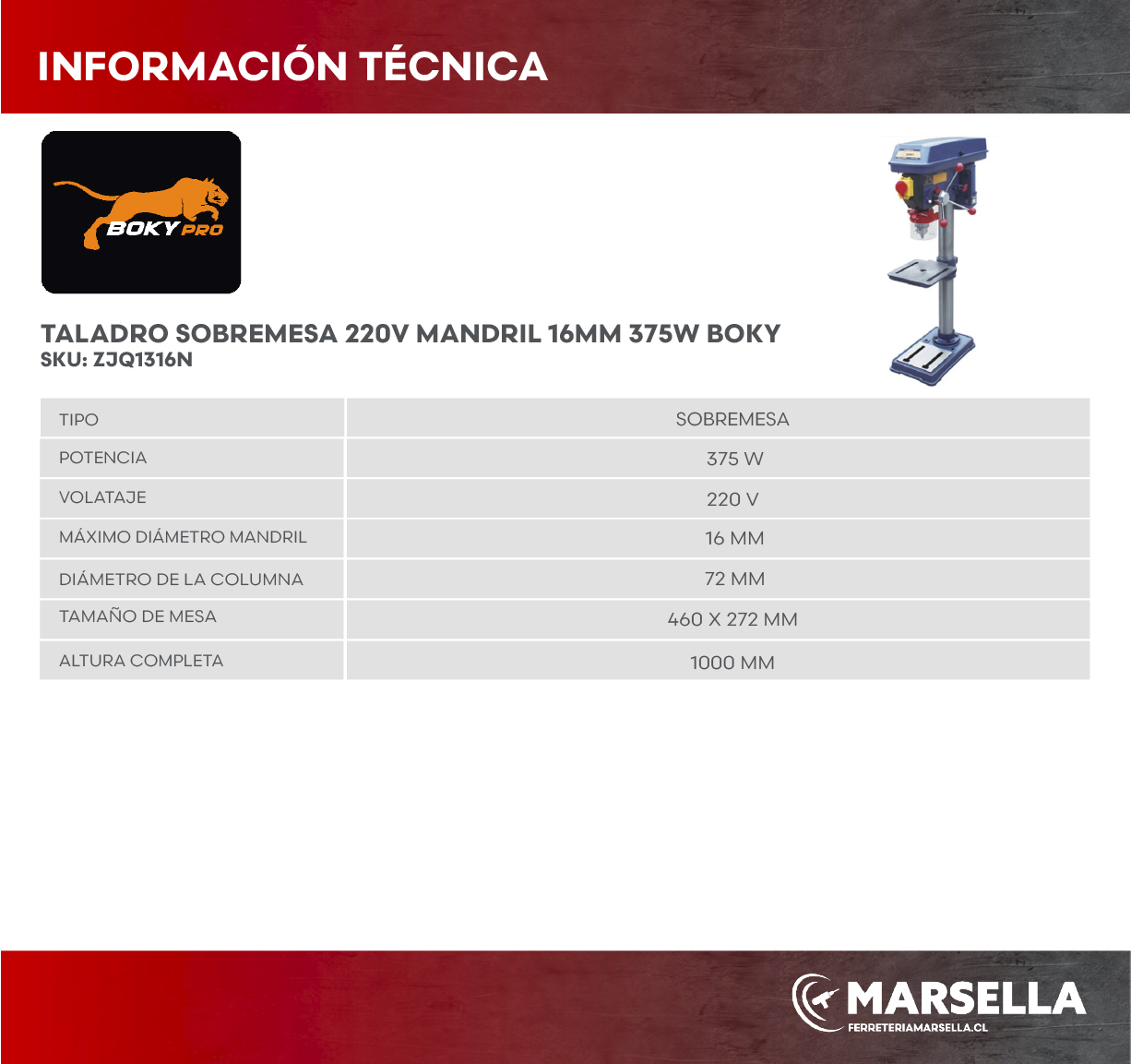 El Taladro de Sobremesa BOKY 220 V con mandril de hasta 16 mm es una herramienta compacta, precisa y eficiente para talleres de metal, madera o labores de prototipado. Su diseño de bancada permite montarlo sobre mesa o banco de trabajo, facilitando perforaciones exactas sin ocupar tanto espacio como una máquina de pie.