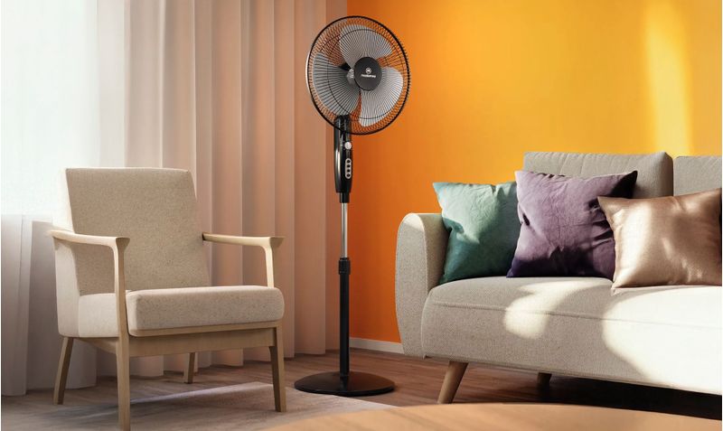 El ventilador de pedestal Mademsa SF160 de 16" combina un flujo de aire potente con bajo consumo energético (60 W.), ideal para refrescar livings, dormitorios u oficinas de tamaño mediano. Su altura regulable hasta 137 cm, oscilación de 90° y cabezal con inclinación ajustable permiten dirigir el aire exactamente hacia donde se necesita. Incorpora 3 velocidades y timer de hasta 2 horas, lo que facilita adaptar la intensidad del flujo de aire y programar el apagado automático para mayor comodidad y ahorro. El diseño en color negro con aspas transparentes y rejilla extraíble aporta una estética discreta y simplifica la limpieza.